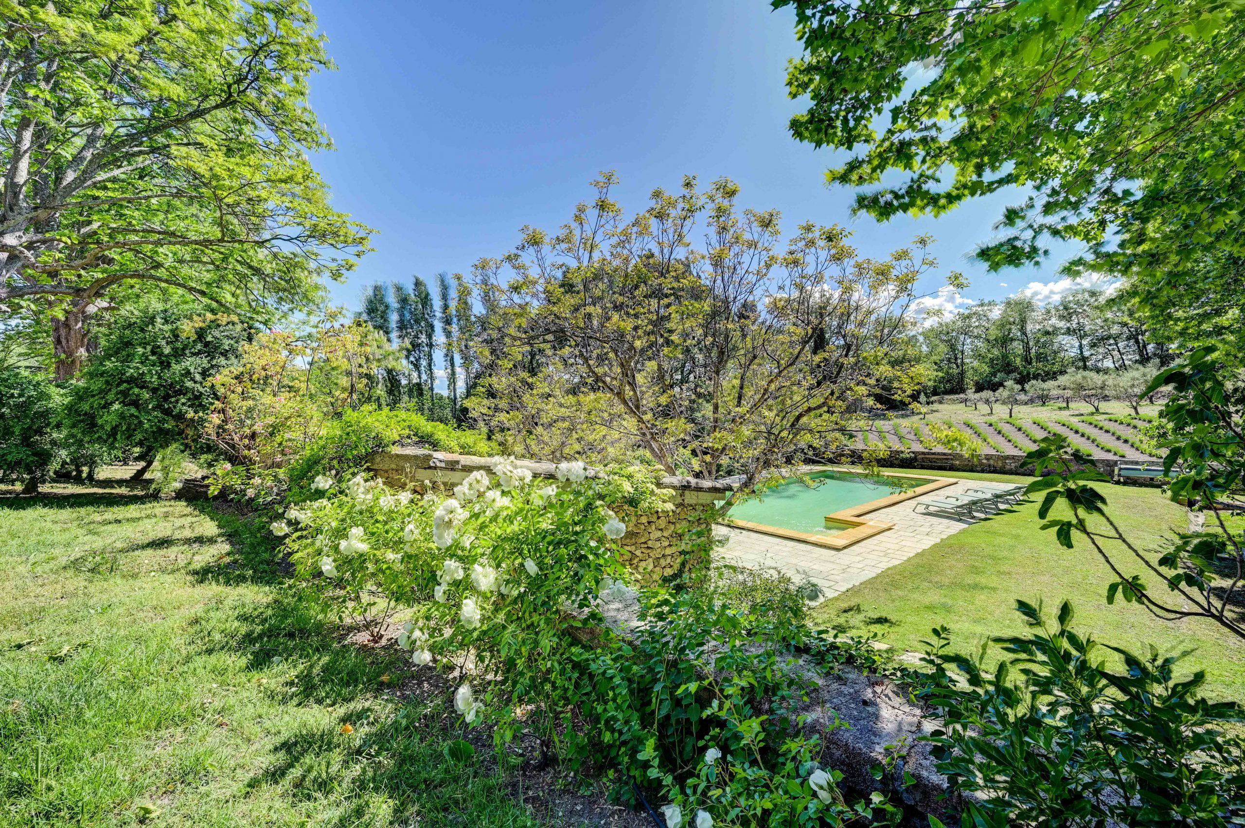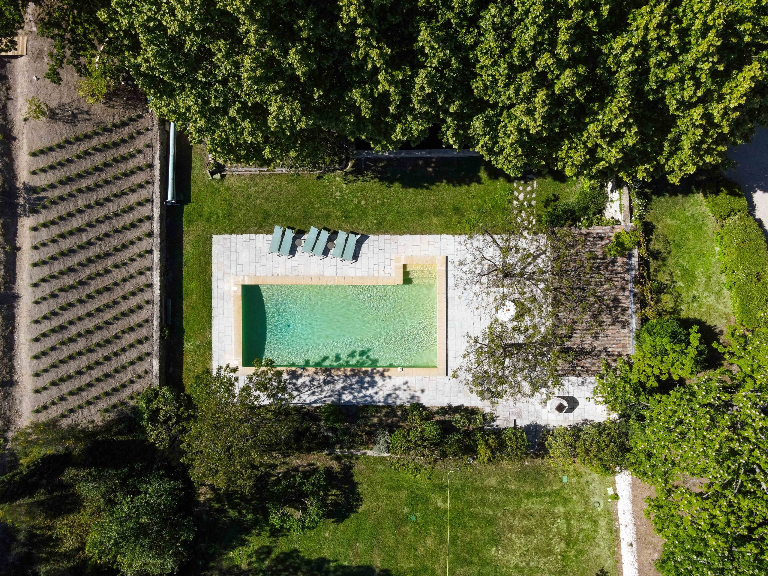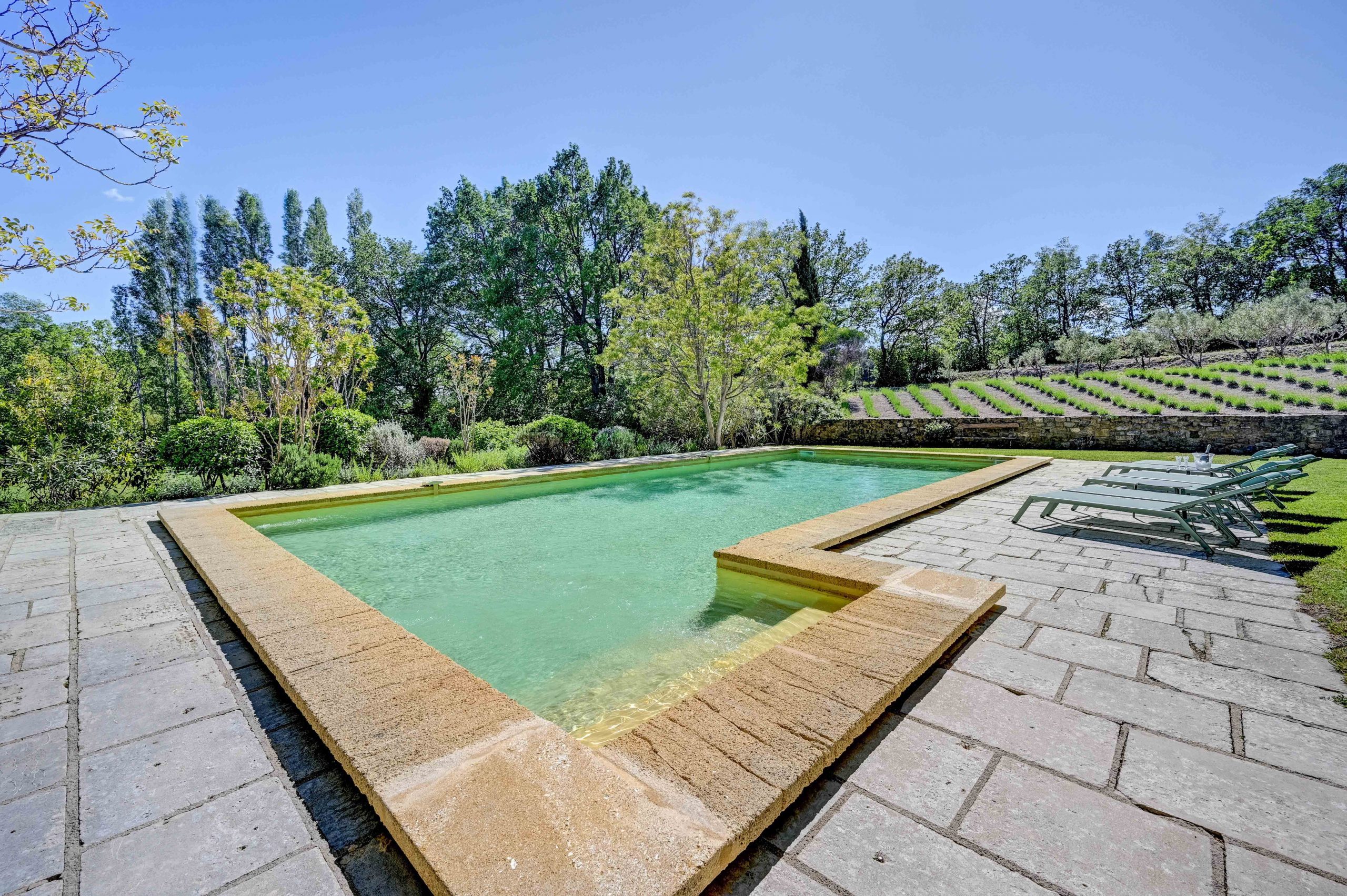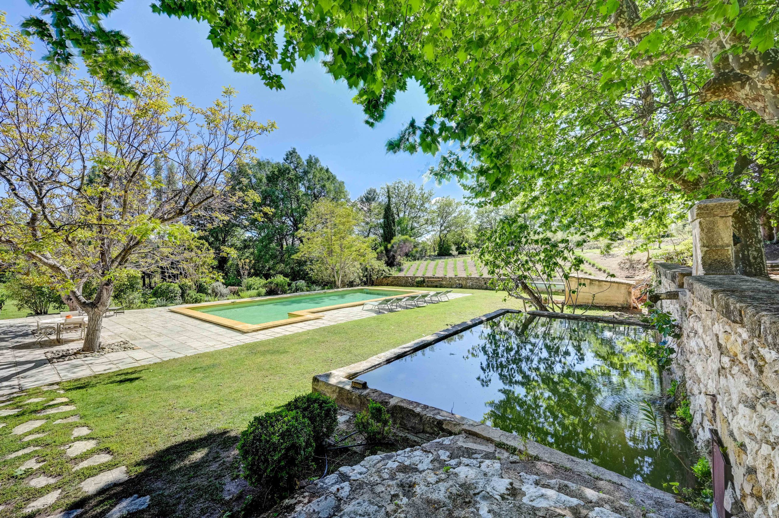 L’extérieur de la Bastide du Souvenir est un véritable havre de paix, où la nature règne en maître. Les essences méditerranéennes vous offrent un spectacle de couleurs et de senteurs, tandis que le doux bruit de l’eau de la source naturelle vous apaisera. La piscine de quinze mètres par six, avec son pool house aménagé, est le lieu idéal pour se rafraîchir lors des chaudes journées d’été. Le terrain de tennis ombragé, quant à lui, ravira les sportifs en herbe.