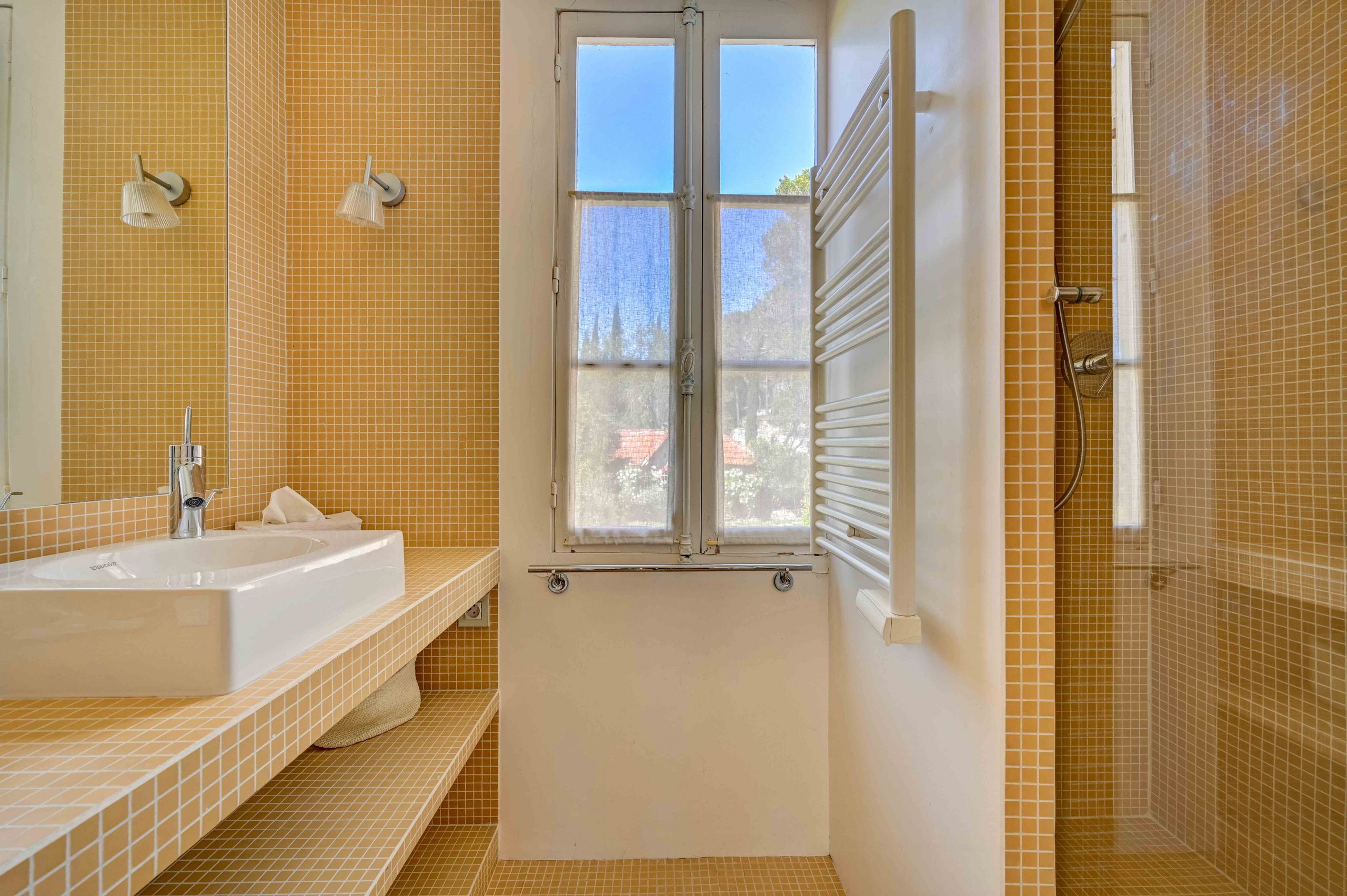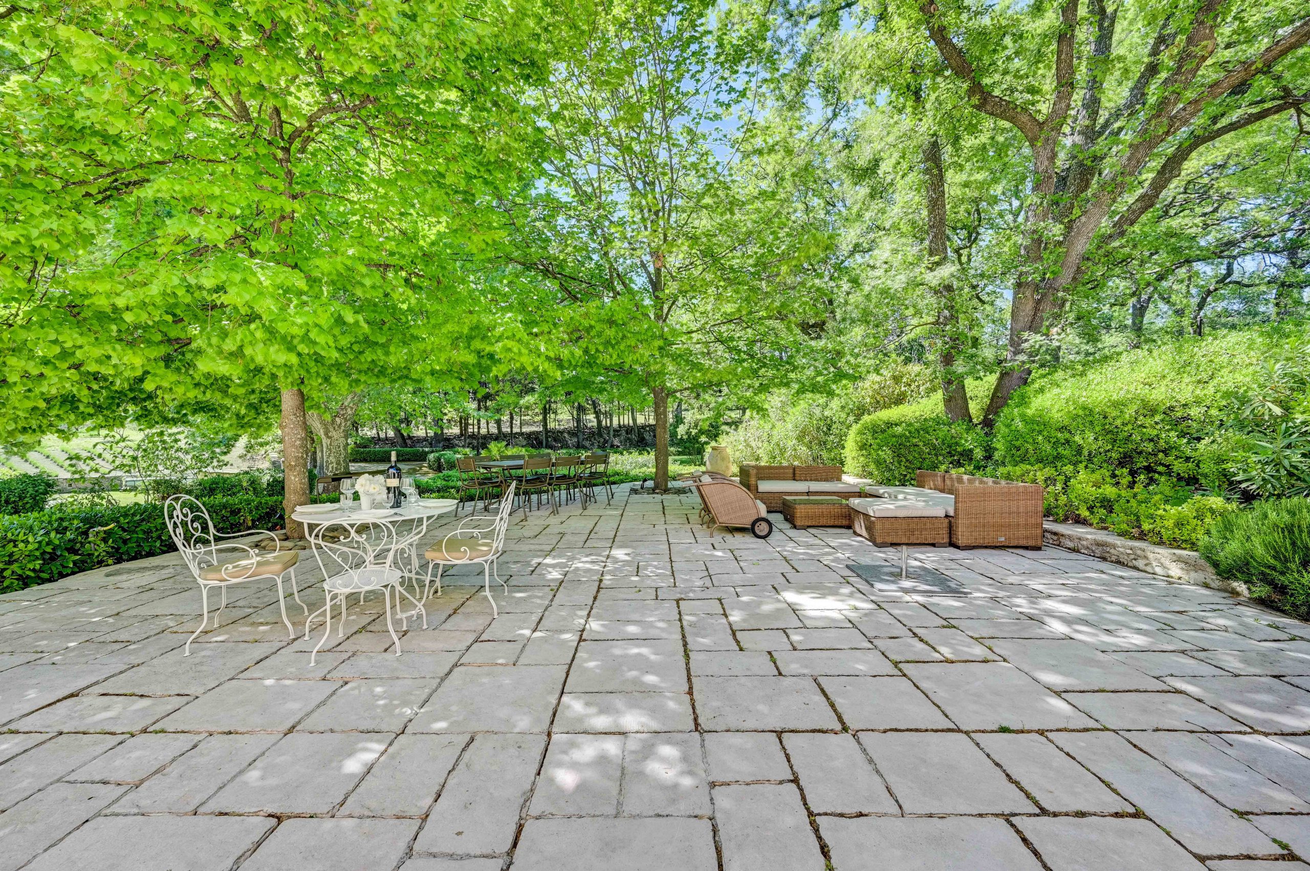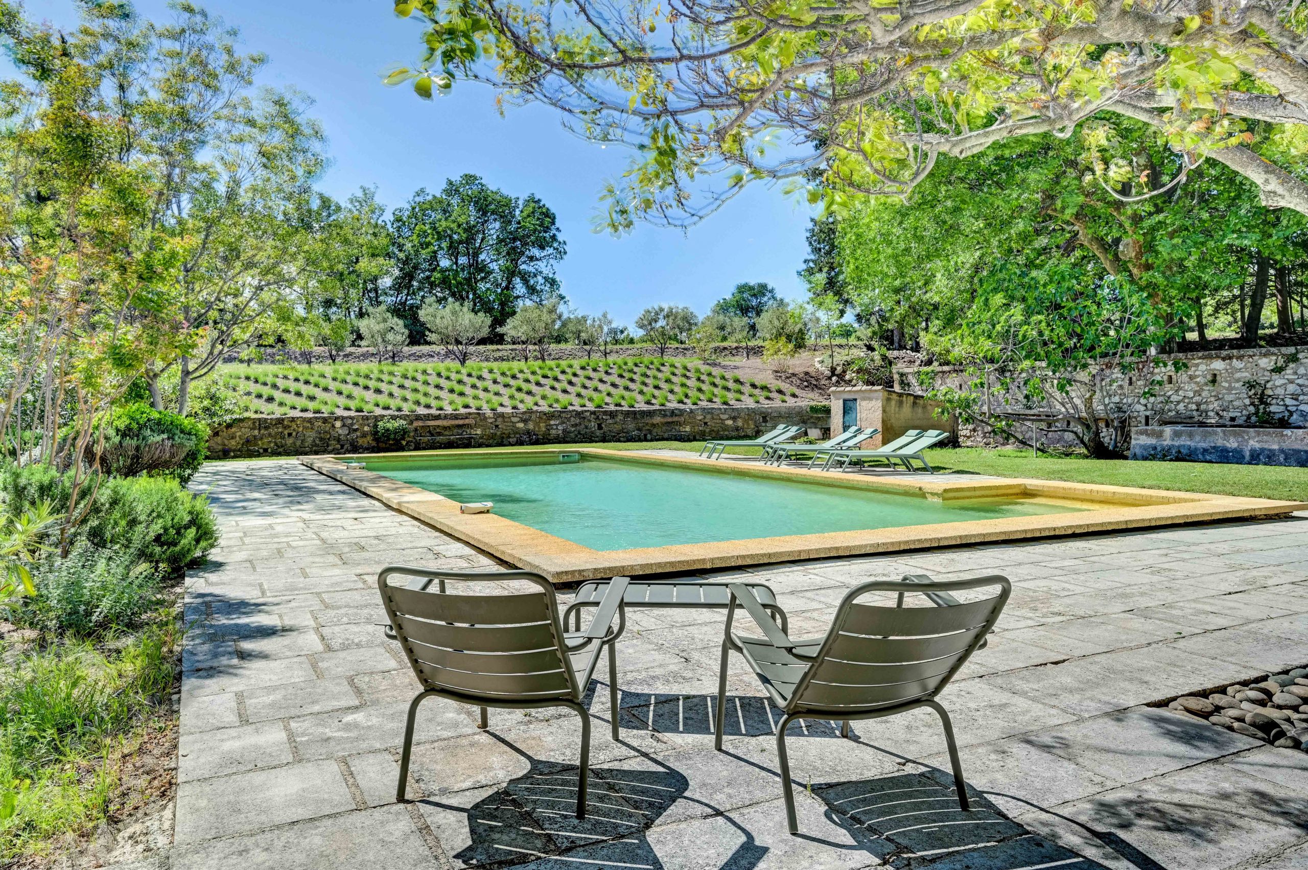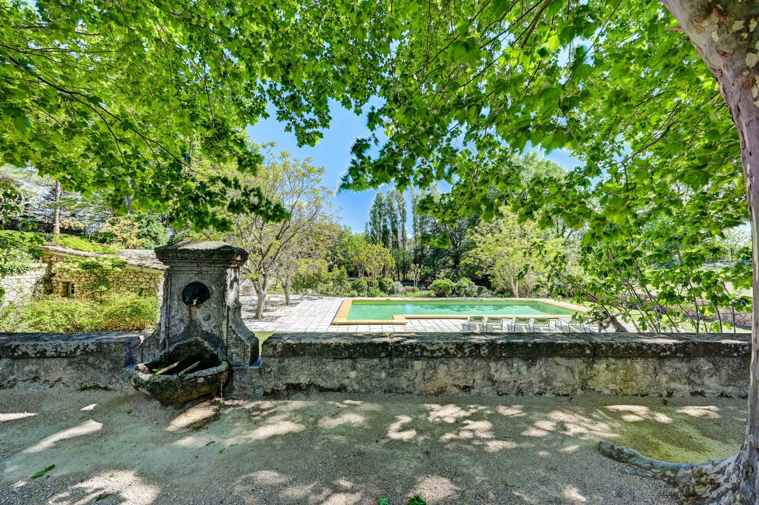 L’extérieur de la Bastide du Souvenir est un véritable havre de paix, où la nature règne en maître. Les essences méditerranéennes vous offrent un spectacle de couleurs et de senteurs, tandis que le doux bruit de l’eau de la source naturelle vous apaisera. La piscine de quinze mètres par six, avec son pool house aménagé, est le lieu idéal pour se rafraîchir lors des chaudes journées d’été. Le terrain de tennis ombragé, quant à lui, ravira les sportifs en herbe.
