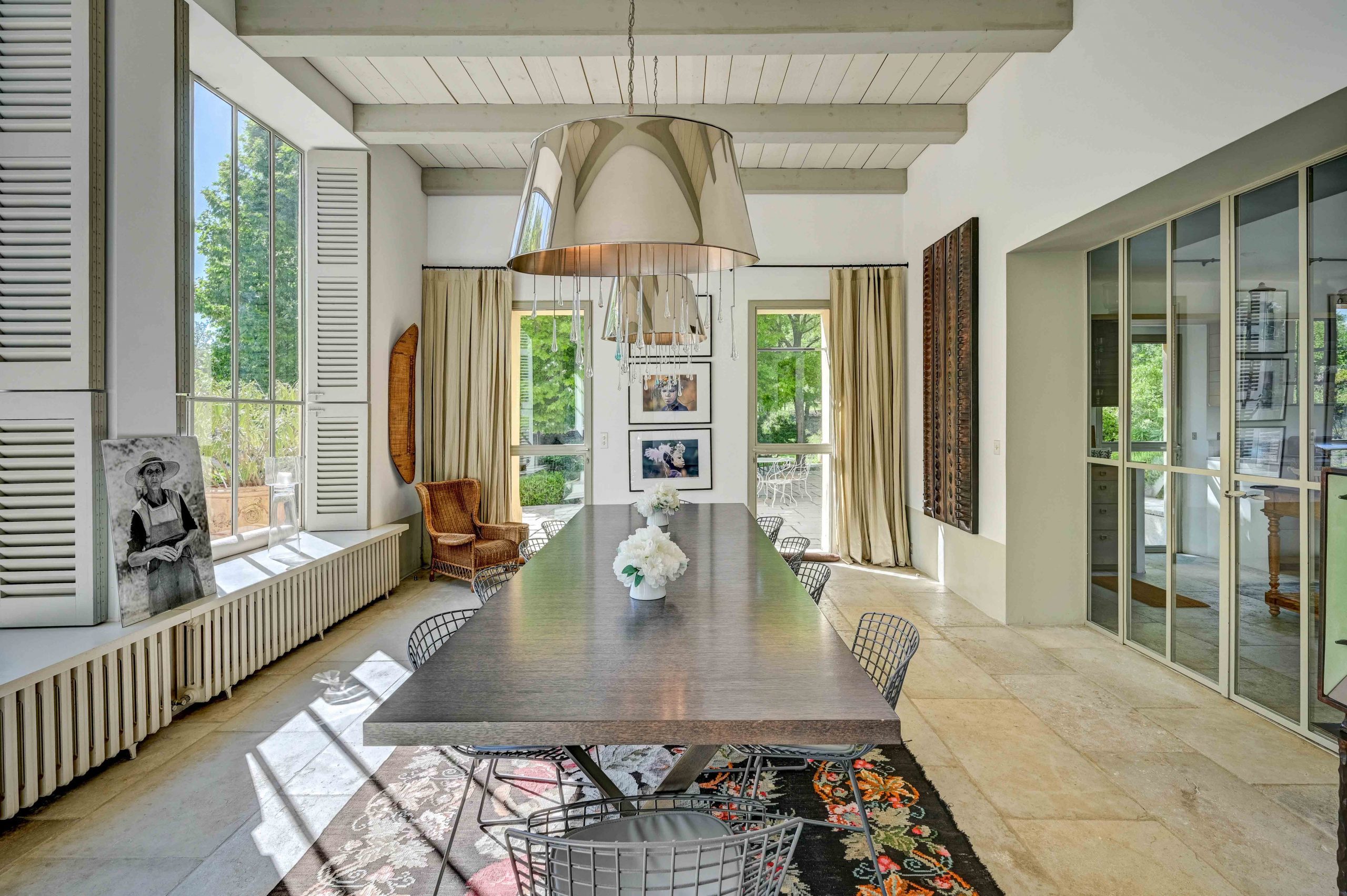 De l’autre côté de la bastide, vous serez enchanté par la cuisine spacieuse qui s’ouvre sur une salle à manger baignée de lumière. Cette pièce de vie conviviale est le lieu idéal pour des moments de partage et de dégustation. La cuisine, quant à elle, est équipée d’un électroménager haut de gamme, vous permettant de concocter des plats savoureux pour vos convives. Depuis la cuisine, vous accéderez à une magnifique terrasse ombragée, où vous pourrez prendre vos repas tout en profitant de la vue sur le parc.