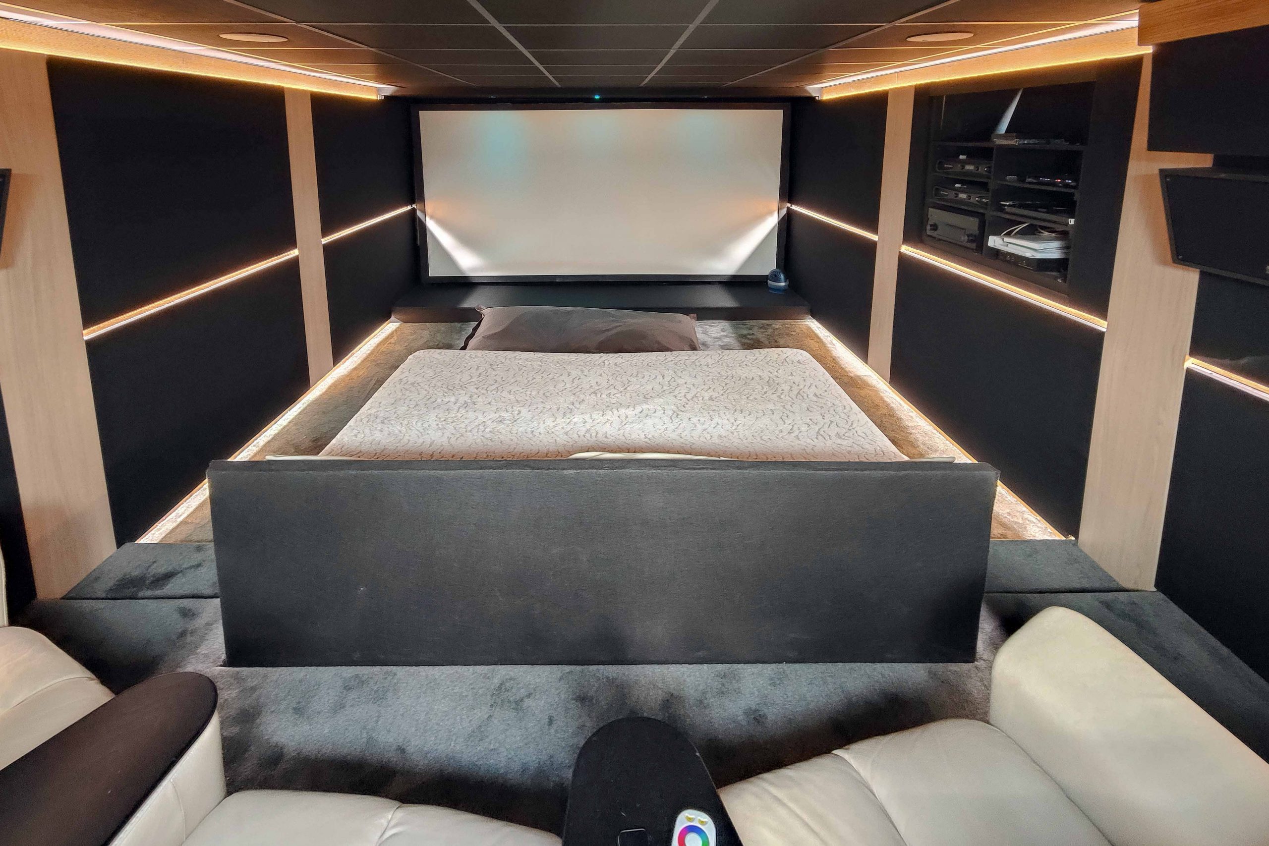 La Villa Alma ne manque pas d’espace pour se divertir. Au sous-sol, vous trouverez une salle de cinéma équipée pour vous permettre de profiter de vos films préférés dans un confort optimal. Un appartement indépendant avec un espace salon, une kitchenette et une chambre double est également à votre disposition, offrant une intimité supplémentaire pour vos invités ou votre personnel.