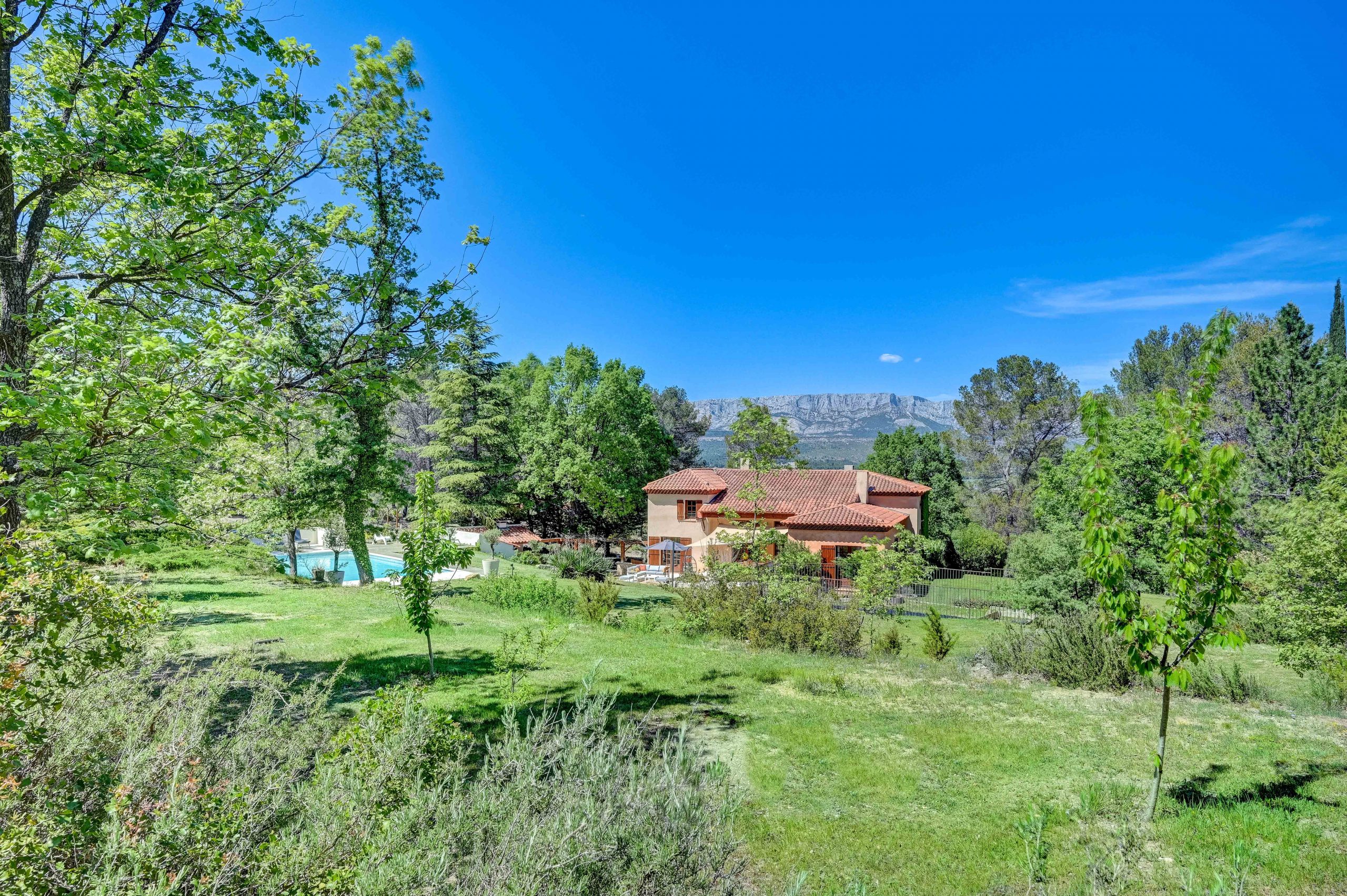 Située dans un magnifique écrin de verdure avec une vue imprenable sur la Sainte Victoire, la Villa Cezanne vous offre un cadre typique de garrigue provençale, entouré de vignes et de bois sur une propriété de 1.2 hectares.