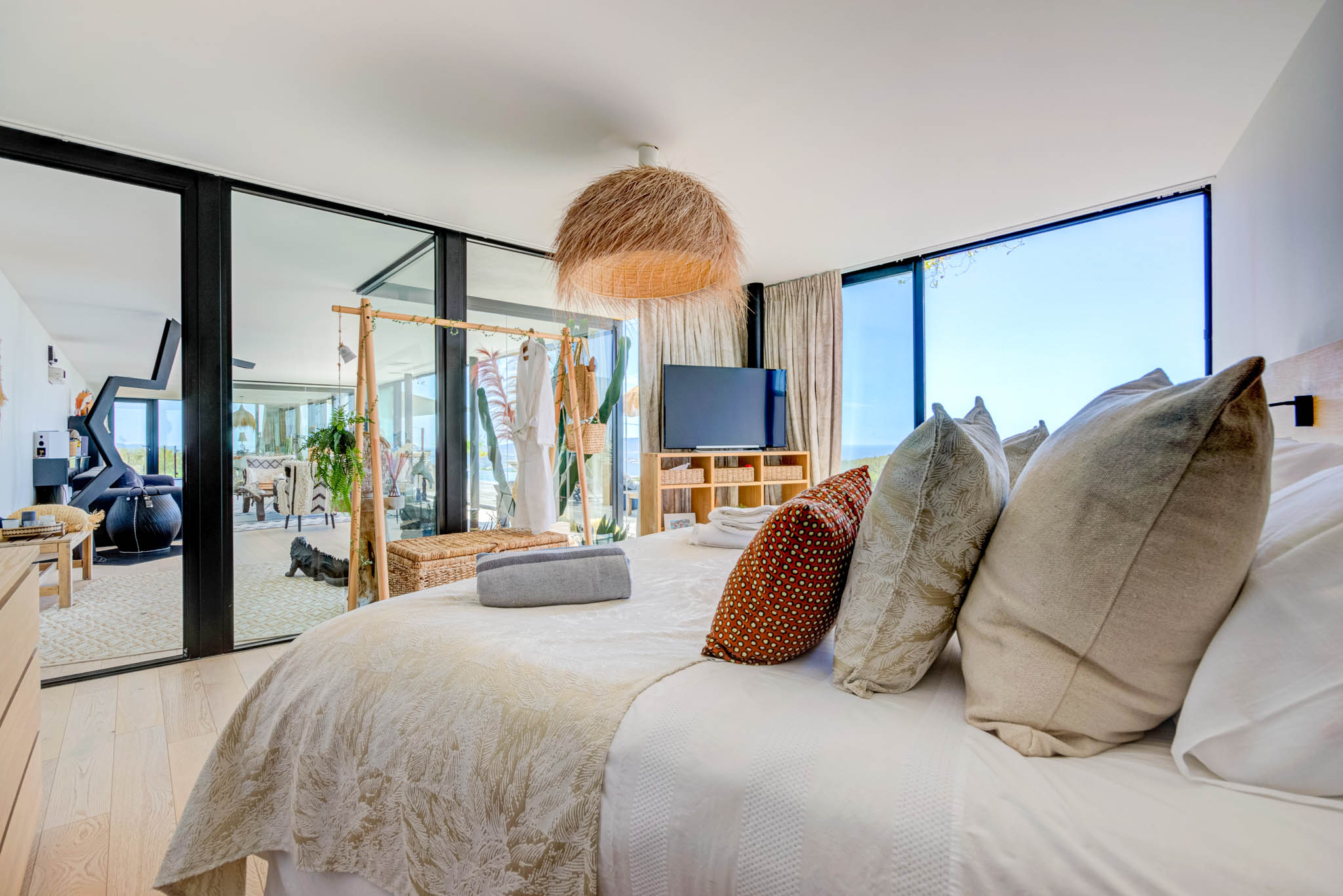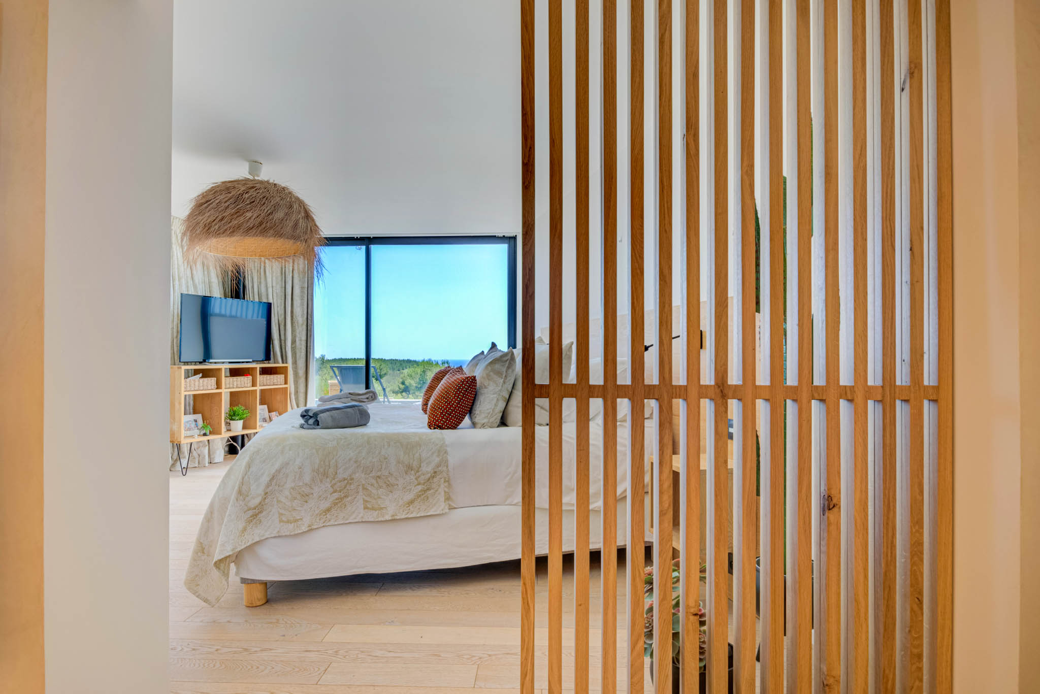À l’étage, la contemplation est à son apogée. Trois suites somptueuses, dotées chacune d’une salle d’eau attenante, subliment l’espace et offrent un panorama saisissant sur les merveilles de la Côte d’Azur.